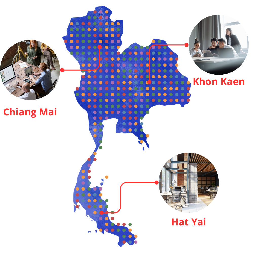 เพื่อรองรับความต้องการของลูกค้าและให้บริการได้อย่างครอบคลุมและรวดเร็วยิ่งขึ้น เราได้ขยายสาขาไปยัง 3 ภูมิภาคหลักของประเทศ ได้แก่